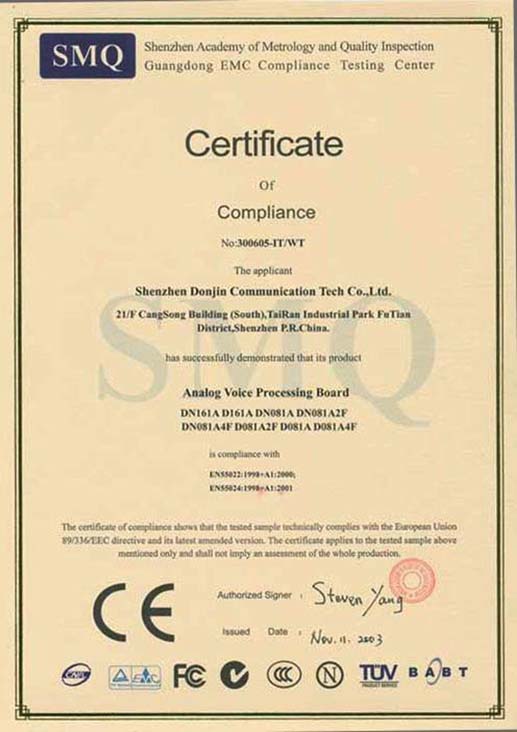 CE/FCC Certificates