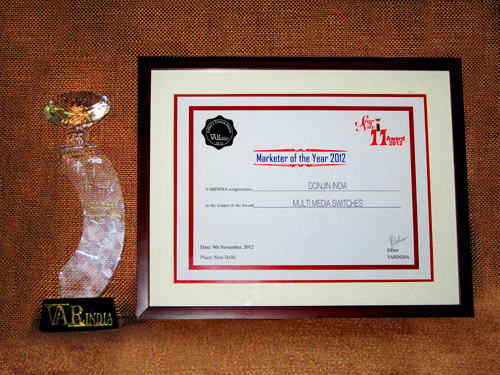 VARINDIA, India's frontline IT publication, organized the eleventh edition of “VARINDIA - Star Nite Awards – 2012” on 9th November, 2012 in New Delhi, India. This event in India is considered to be the litmus test for IT corporate for their marketing policies, strategies and initiatives that involve vendors, distributors and resellers. Eminent personalities and top performers of the IT industry in various categories participated in the event and the IT companies showcased their products. DONJIN Keygoe Multimedia Switches gets the “Marketer of the year 2012”. That’s a testament to Keygoe’s success in India.