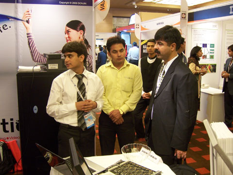 DONJIN CEO John He and the sales manager of India region Hillol introduced DONJIN’s viewpoint and forecast for 3G’s future development, analyzed the environment accurately, and emphasized the chance and challenge brought by multimedia convergence service under the environment of 3G. Although the environments are different, all the delegates and visitors showed warm welcome, the un-appointed concern point during the presentation and actively question and communicate after presentation showed that the domestic viewpoint produced during the development of 3G had lined with international standards, even brought along the technical and application development of upstream-downstream manufacturer in some aspects.