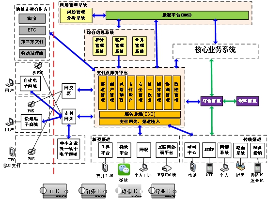 东进商业银行新型支付服务平台包含综合信息、风险管理和支付及服务平台三个子系统。该系统将商业银行已有的系统、业务、数据、网络、客户、渠道、商户等资源进行整合,为商业银行客户提供包含 “网银支付、账户支付、快捷支付、POS刷卡支付、快递货到付款(COD代收款、O2O支付(线上线下支付)、移动支付、二维码支付、云POS支付、POS CNP支付(信用卡无卡支付虚拟POS)”等多种支付方式、多种业务形态、多种接入方式(包括移动终端、POS终端、互联网终端等)、多种产品组合的全渠道支付服务。同时依托商业银行风险管理系统的风险防控和分析统计等功能,为商业银行提供完整的风险管理,数据支持、分析决策等功能。