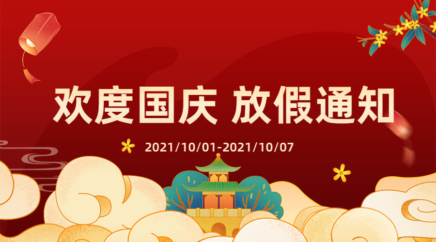 尊敬的客户:公司定于2021年国庆节休假时间为:2021年10月1日至10月7日,共7天。10月8日(星期五)起公司正常上班。节日期间,有关业务或技术等问题,可拨打公司总部及各区域分支机构的值班电话...