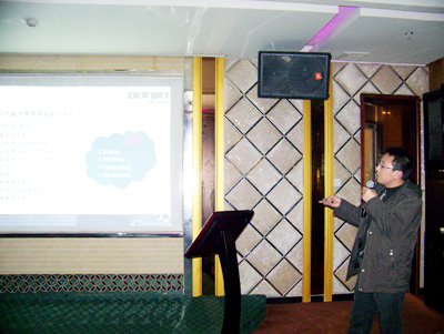 (图3东进技术Keygoe多媒体交换机产品经理刘骏先生就3G/呼叫中心/应急指挥做主题演讲)