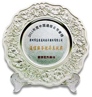 (图:东进技术获“2011年度通信服务优异表现奖”奖牌)