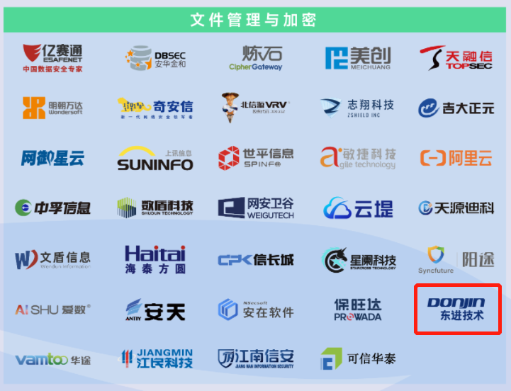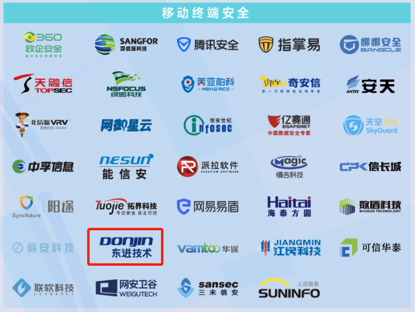 本次图谱调研成功收录312家网络安全企业。东进技术成功入选此次产业图谱中的密码机、密码管理系统、数字证书、网络接入管理、加密通信、云应用安全、云基础设施安全、云平台安全管理、移动终端安全管理、移动应用安全、物联网安全、信创安全、区块链安全、车联网安全、态势感知、文件管理与加密等16项细分领域。