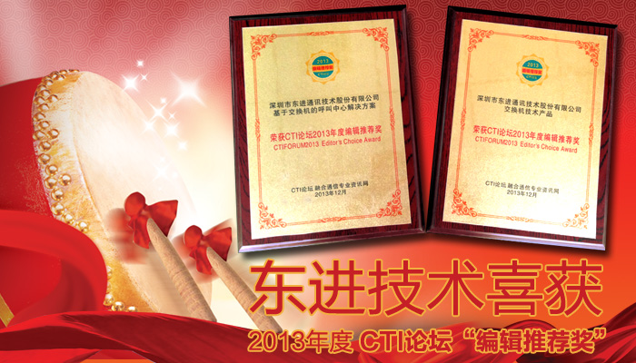 东进技术喜获2013年度 CTI论坛“编辑推荐奖”