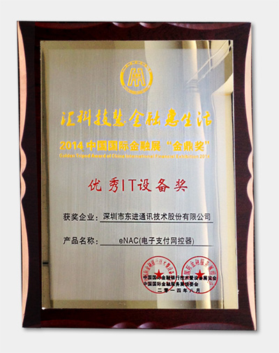 (图:东进eNAC电子支付网控器获“金鼎奖”奖牌)