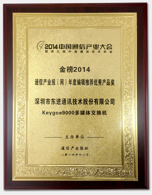 (图:东进keygoe9000多媒体交换机获金榜2014奖)
